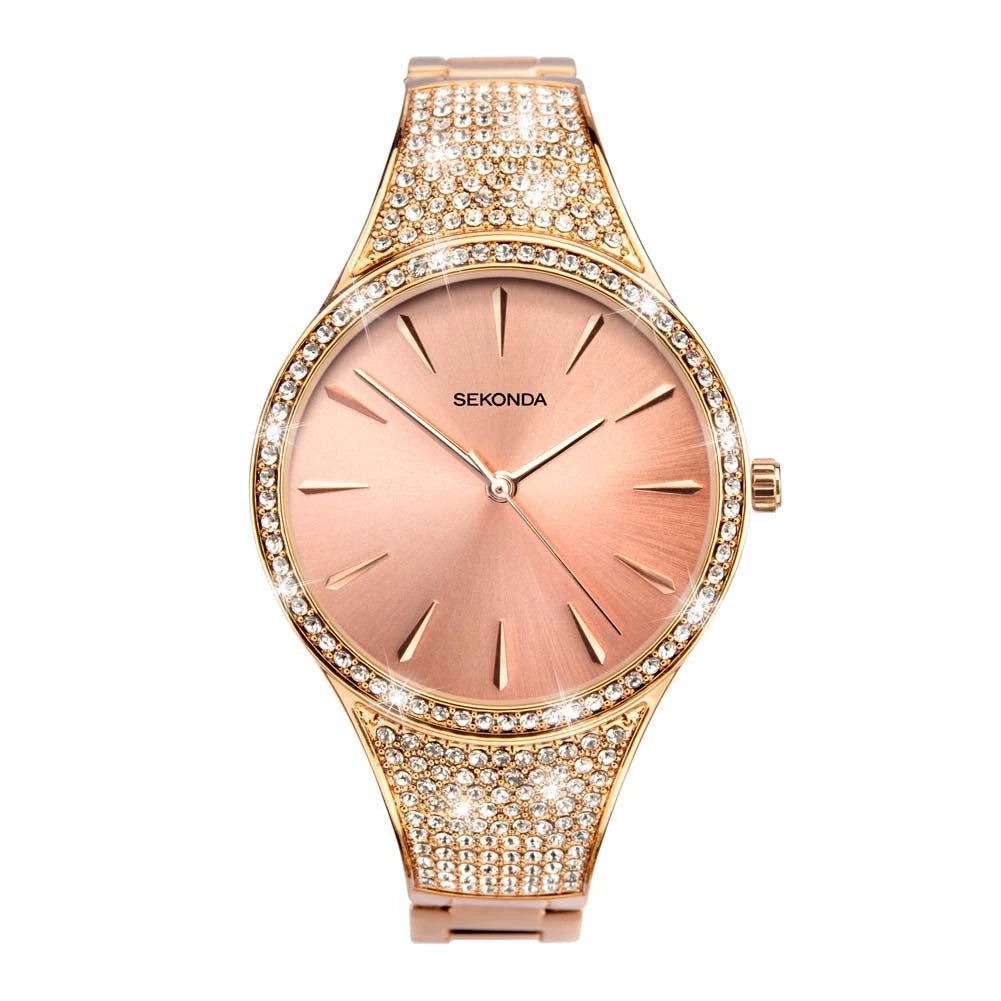 Product Description: Add a touch of refined elegance to your look with the Sekonda Rose Gold Ladies Quartz Bracelet Watch (Model 40419) — a perfect fusion of style, comfort, and precision. This exquisite timepiece showcases a 33mm round brass case in a warm rose gold tone, complemented by a matching metal bracelet that offers a sleek and sophisticated finish.